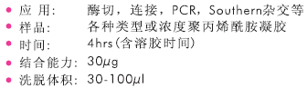 DNA經(jīng)PAGE凝膠電泳分離后,切下含目標(biāo)DNA片段的凝膠塊,用兩塊滅菌過(guò)的玻璃片壓碎凝膠塊(因聚丙烯酰胺凝膠不能溶解,這一步要盡量壓碎凝膠),用含有EDTA的緩沖液浸泡凝膠后,轉(zhuǎn)移至過(guò)濾柱中過(guò)濾去除凝膠碎片,加入新型的結(jié)合緩沖液后,轉(zhuǎn)移至HiBind®離心柱,離心結(jié)合DNA,經(jīng)簡(jiǎn)單的洗滌后,用Elution Buffer洗脫DNA。