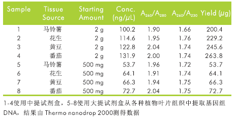 從小于新鮮500mg(中量)植物組織中提取基因組DNA