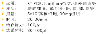 從<5×106真核培養(yǎng)細胞或<30mg軟組織中提取高達100ug總RNA