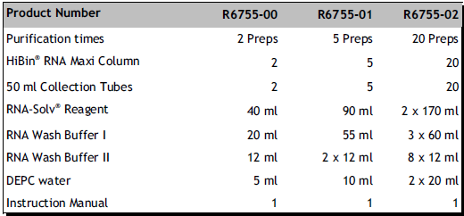 從5×108個細胞/1g組織中提取高達5mg總RNA