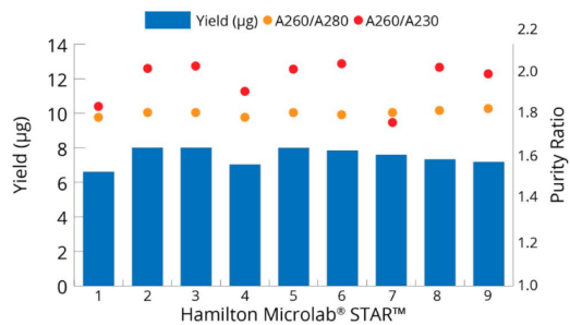 3.在Hamilton Microlab®Star™上實(shí)現(xiàn)自動(dòng)化質(zhì)粒提取,產(chǎn)量和純度一致